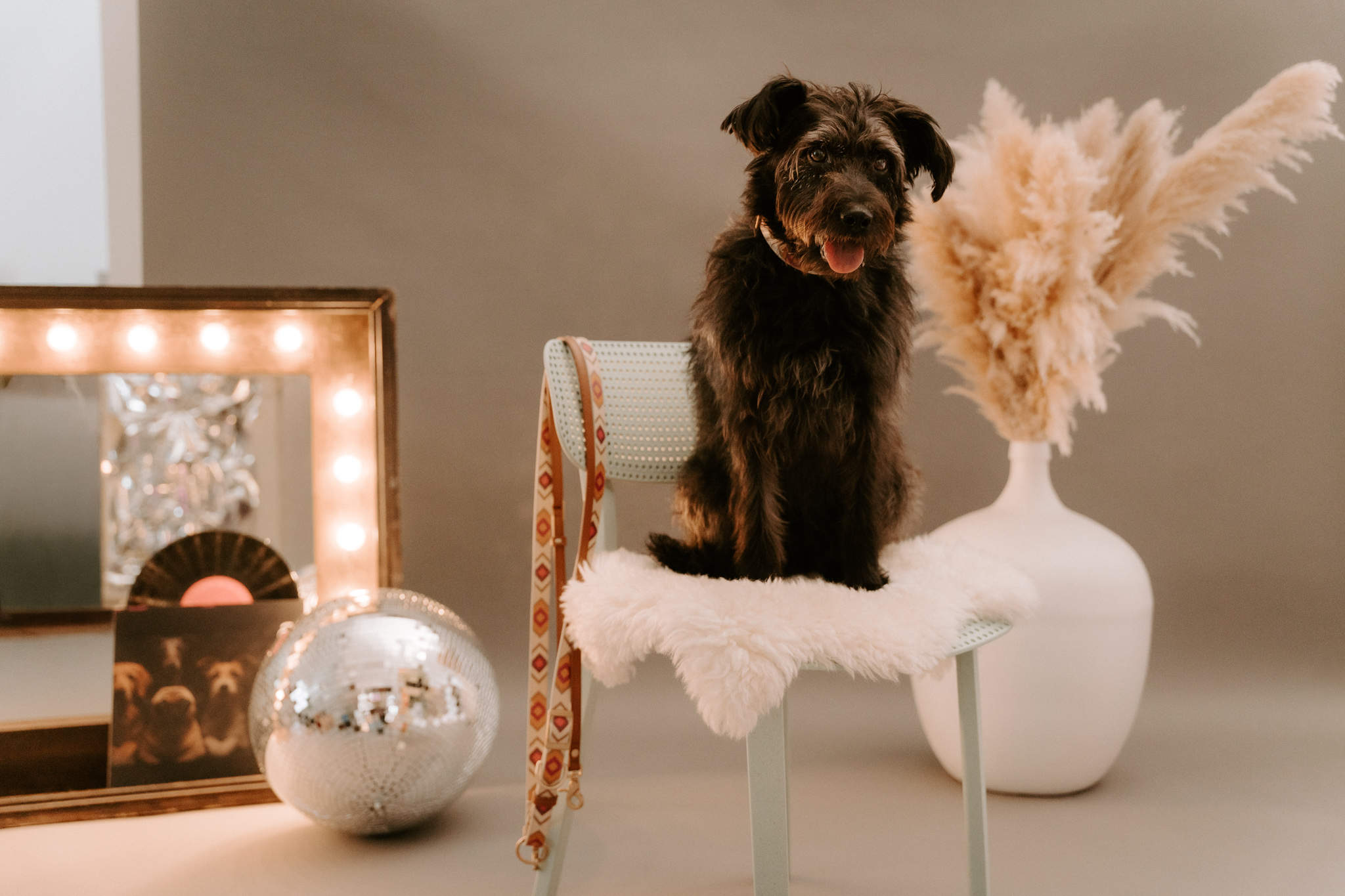 Die Idee war das Fotoshooting ganz nach dem Motto „Pawhemian Rapsody“ aufzubauen. Gesagt getan, das Studio wurde also im November bunt, musikalisch und weihnachtlich. Wir hatten insgesamt 5 Hunde-Teams zu unterschiedlichen Uhrzeiten da. Alle Hunde haben so toll mitgemacht, aber wir haben die Zeit total unterschätzt. Es musste doch mehr fotografiert werden als gedacht, also wurden die Pläne wieder umgeworfen.